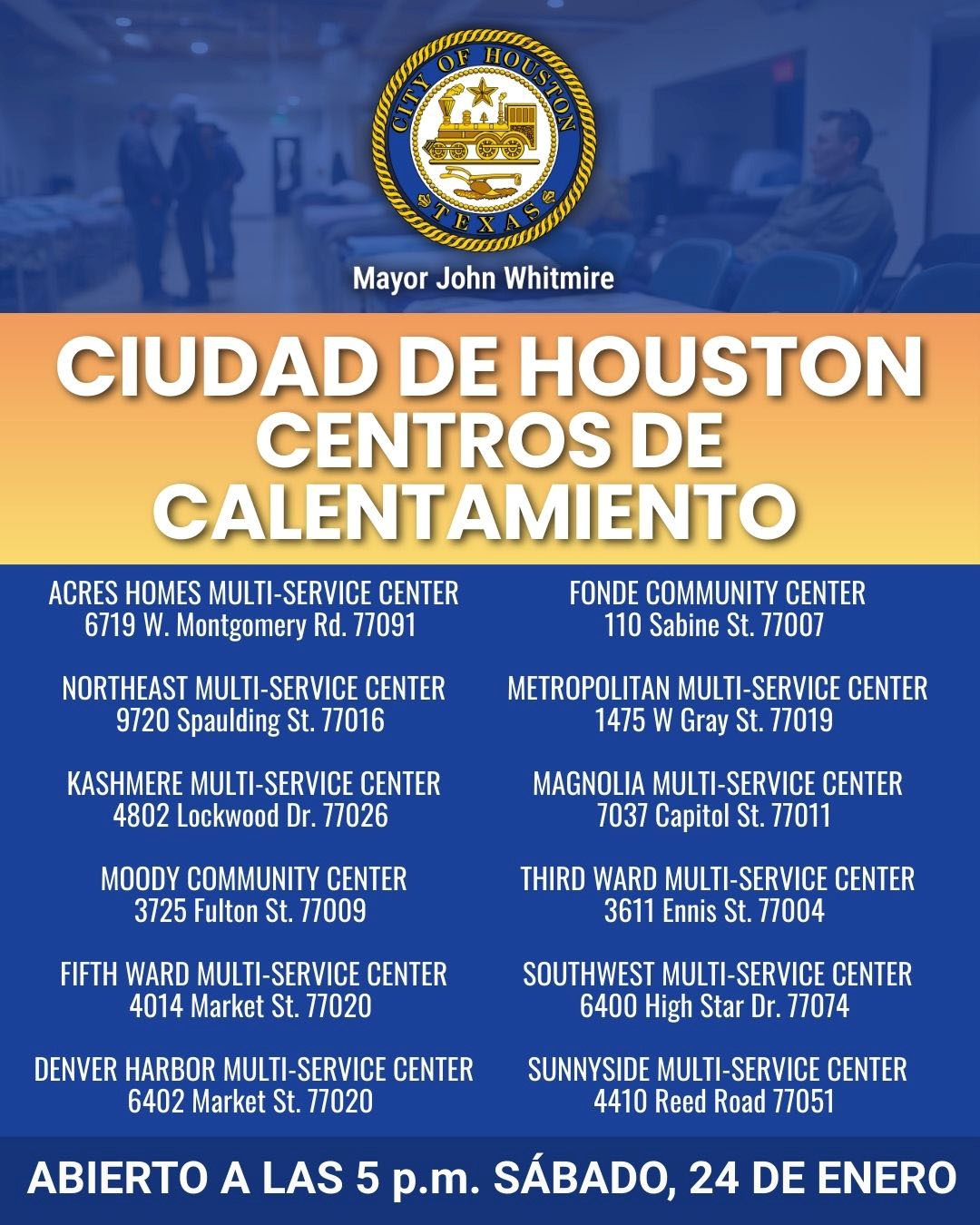 WARMING CENTERS WILL OPEN ACROSS THE CITY OF HOUSTON